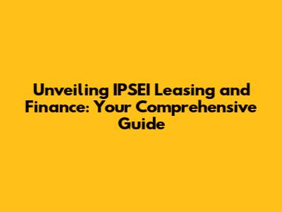Hey guys! Ever heard of IPSEI Leasing and Finance? Maybe you've stumbled upon it while researching financial options or looking to expand your business. Well, you're in the right place! We're diving deep into the world of IPSEI, breaking down what it is, how it works, and why it might be a game-changer for you. Get ready to explore the ins and outs of this fascinating financial landscape, all explained in a way that's easy to understand. We'll be covering everything from the fundamental definition of IPSEI to the practical applications of its leasing and financing services. Whether you're a seasoned entrepreneur or just starting to dip your toes into the world of finance, this guide will provide you with valuable insights and practical knowledge. So, buckle up and let's unravel the mysteries of IPSEI Leasing and Finance together!