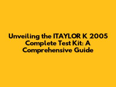 Hey guys! Ever wondered about the ITAYLOR K 2005 complete test kit? Well, you're in the right place! We're about to dive deep into this kit, exploring everything from what it is, what's included, how to use it, and why it's a valuable tool. This isn't just a product review; it's a comprehensive guide designed to equip you with all the knowledge you need. Ready to become an expert on the ITAYLOR K 2005? Let's get started!