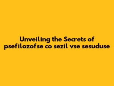 Unveiling The Secrets Of 'psefilozofse Co Sezil Vse Sesuduse'