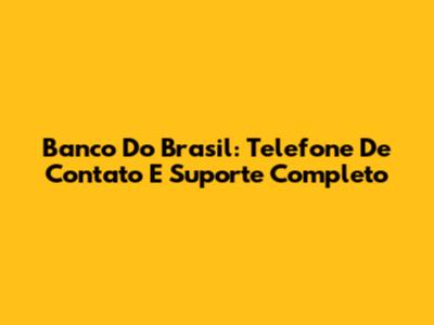 Banco Do Brasil: Telefone De Contato E Suporte Completo