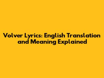 Volver: English Translation And Meaning Explained