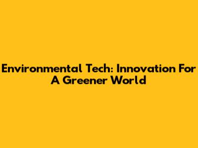 Environmental Tech: Innovation For A Greener World