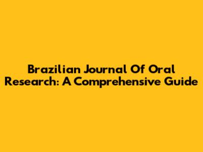 Brazilian Journal Of Oral Research: A Comprehensive Guide