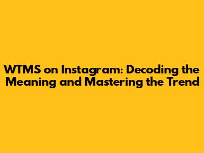 Hey everyone, ever stumbled upon the acronym WTMS while scrolling through Instagram and thought, "What in the world does that mean?" Well, you're not alone! WTMS has become a popular term, and it's essential to understand its meaning to stay in the loop. In this article, we'll dive deep into WTMS, unraveling its meaning, exploring how it's used on Instagram, and providing tips on incorporating it into your own posts. So, buckle up, because we're about to decode WTMS!